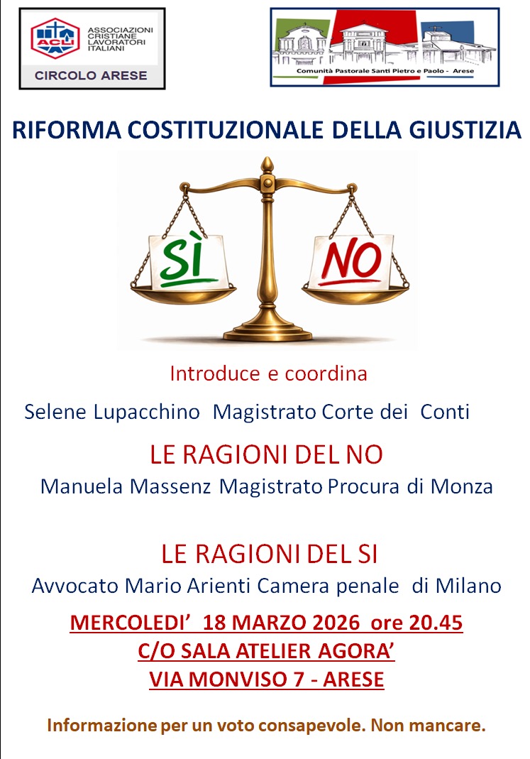 Ciao ti informiamo che il circolo ACLI di Arese ha organizzato questa iniziativa che si rivolge soprattutto alle persone ancora indecise o che pensano di non andare a votare.