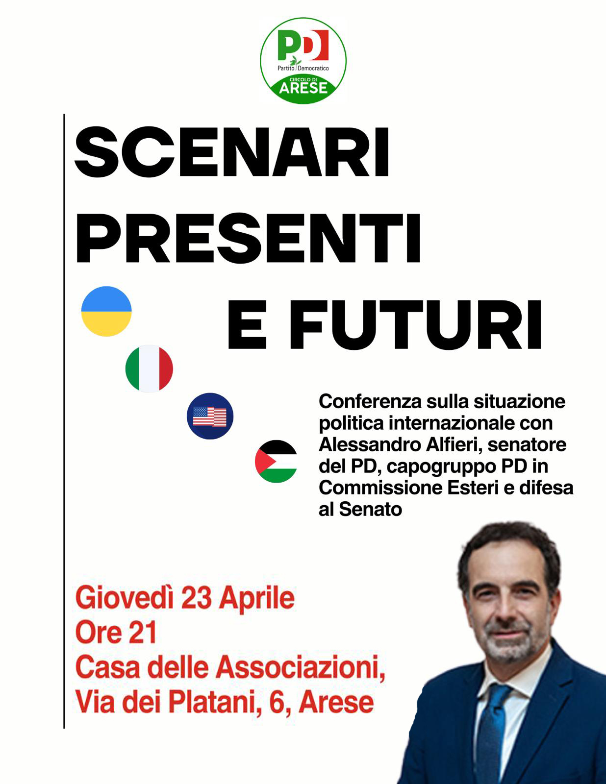 Partecipa anche tu alla Conferenza sulla situazione politica internazionale, organizzata dal nostro Circolo presso la Casa delle Associazioni, con un relatore d'eccezione: Alessandro Alfieri senatore e capogruppo PD in Commissione Esteri e Difesa.